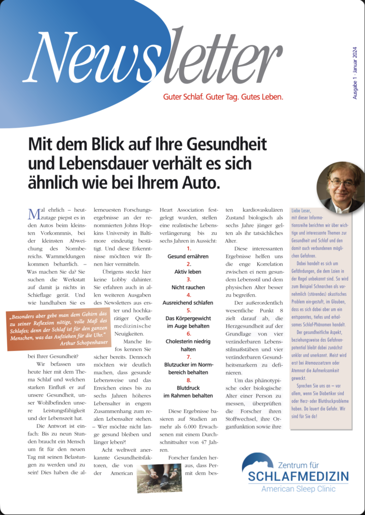 Image-Broschüre des Zentrums für Schlafmedizin / American Sleep Clinic in Frankfurt am Main